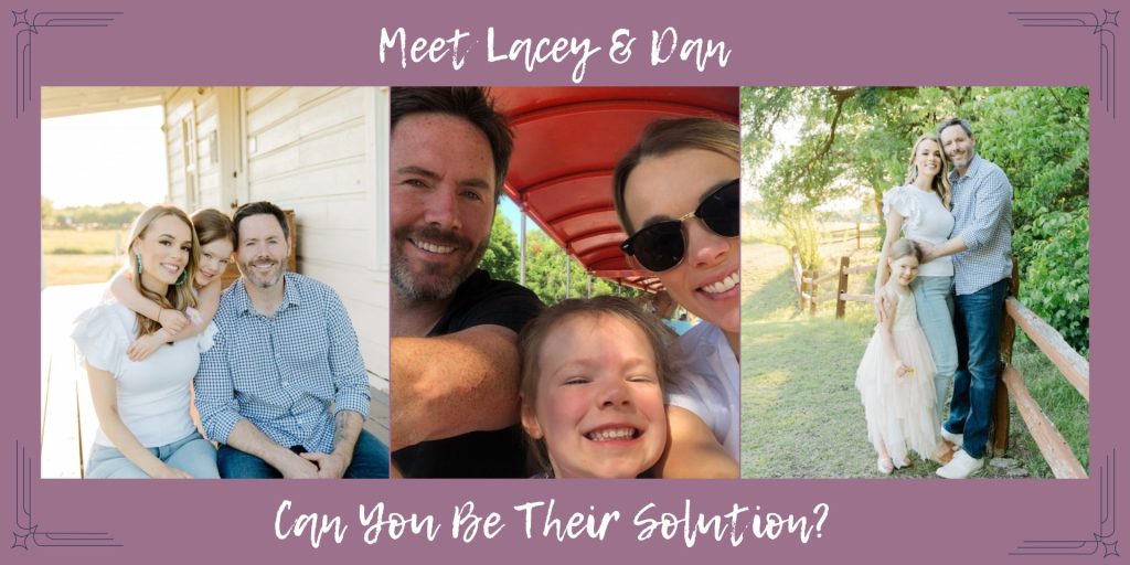 During the surrogacy process, not only are you giving the couple or individual you are carrying for an amazing gift, you are creating moms, dads, aunts, uncles, grandparents, and extended family. Without a selfless woman like you these couples cannot either become parents or extend their family. Learn more about our intended parents Lacey & Dan and why they need a surrogate to grow their family & help their daughter to become a Big Sister.
