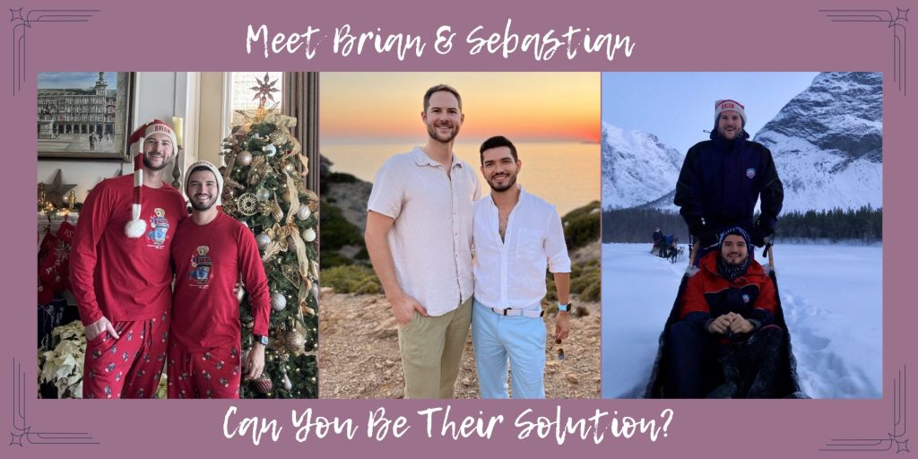 We’re Brian and Sebastian, though our friends like to call us “Sebrian.” We’ve been together for almost seven years and currently live in NYC. Sebastian is originally from Colombia, and Brian is from California, so there’s a lot of Spanglish spoken in our home! Despite growing up in different cultures, we share strong family values and recognize the importance of staying connected with those we love.