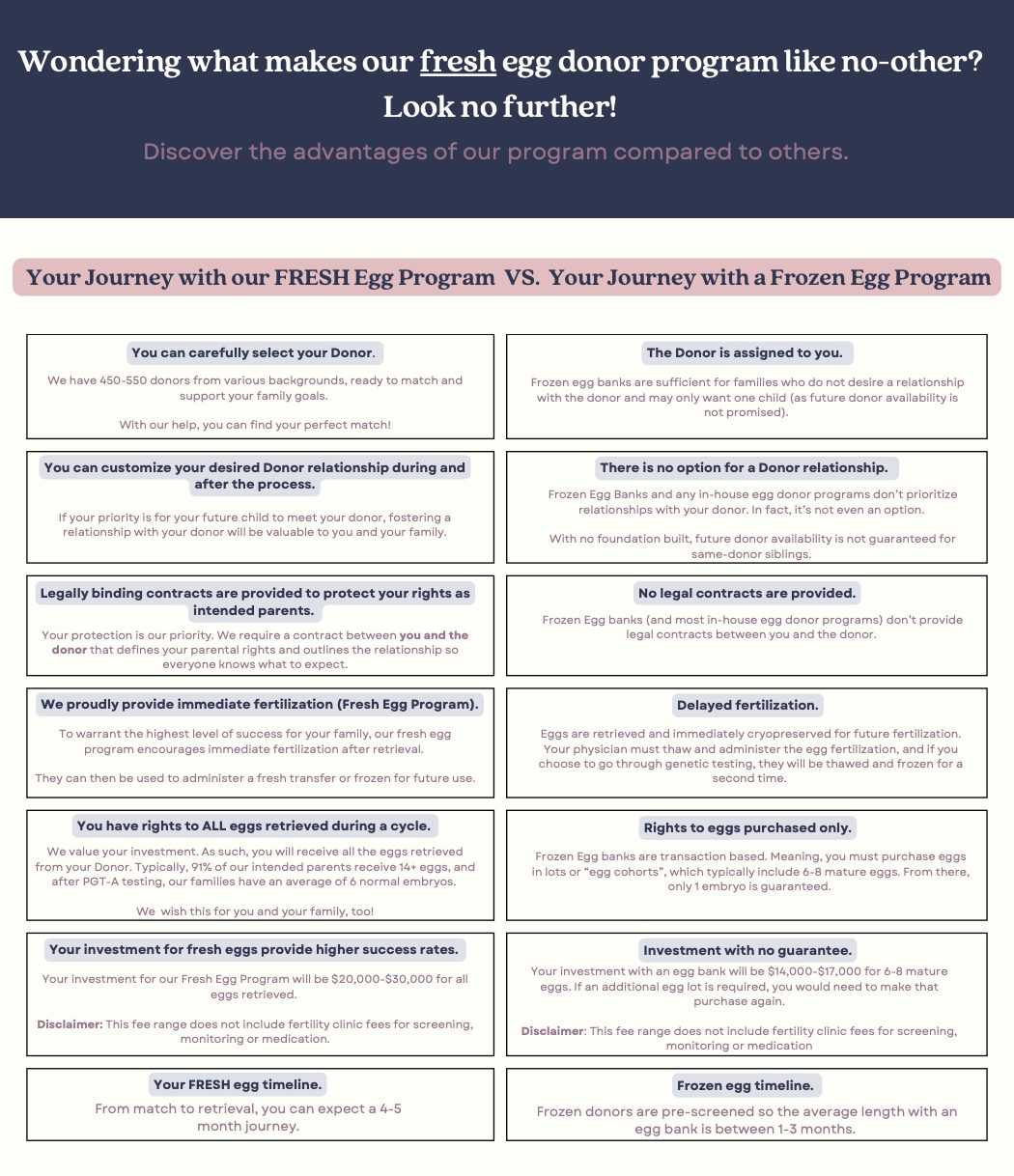 We believe OUR FRESH Egg Donor Program serves you best