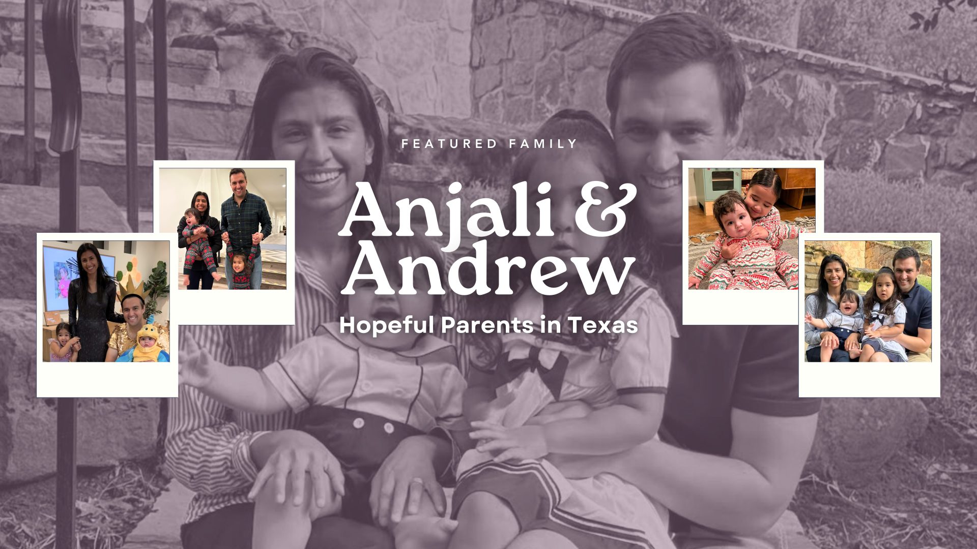 Hi! We are Anjali and Andrew, and we are so grateful that you are taking the time to read a little about our family.